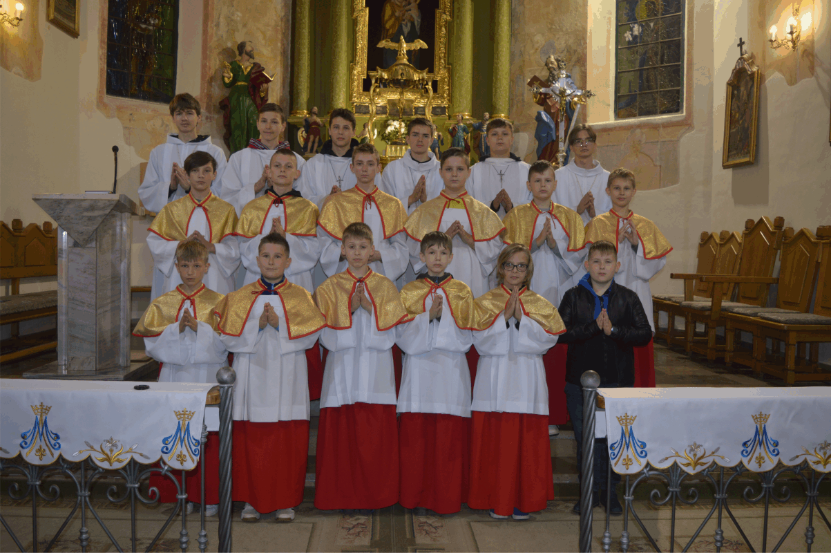W naszej parafii w Liturgicznej Służbie Ołtarza mamy 14 lektorów, a także 13 ministrantów oraz 5 kandydatów.